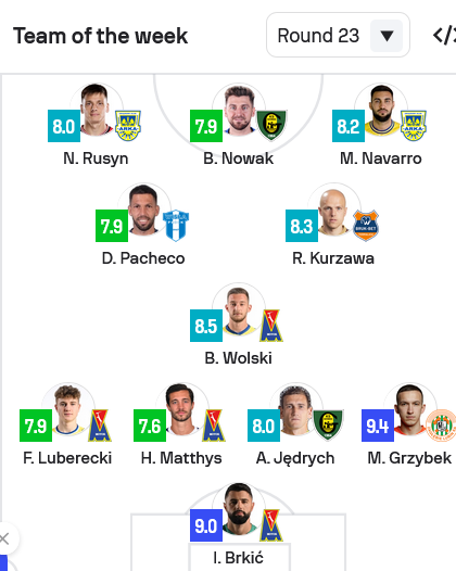 Український гравець «Арки» Назарій Русин включений до символічної збірної 23-го туру чемпіонату Польщі за версією статистичного ресурсу SofaScore.
